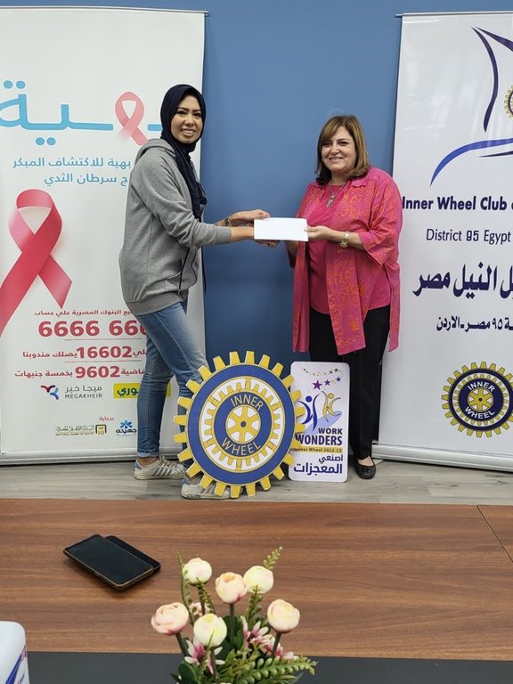 On the occasion of the breast Cancer awareness month in October, IWC of El Nile represented by its president Mrs. Amal Basha and the honorary secretary Mrs. Mona Kamel visited “Baheya Foundation for early detection and treatment of Breast Cancer “ on October 27,2022. The club donated a sum of money for the new hospital equipment for early microscopic discovery and treatment of breast cancer
